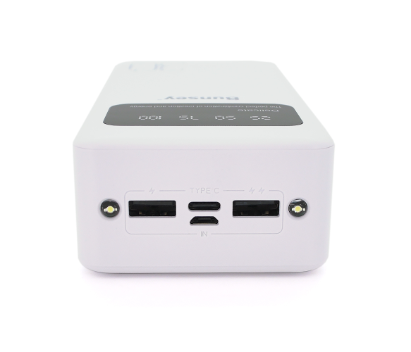 Цей PowerBank Bunsey BY-12 вміщує в собі 30000mAh і має різноманітні входи та виходи, що дозволяє використовувати його з різними пристроями. Він має білий колір та забезпечує швидку зарядку завдяки технологіям QC22.5W та PD20W.