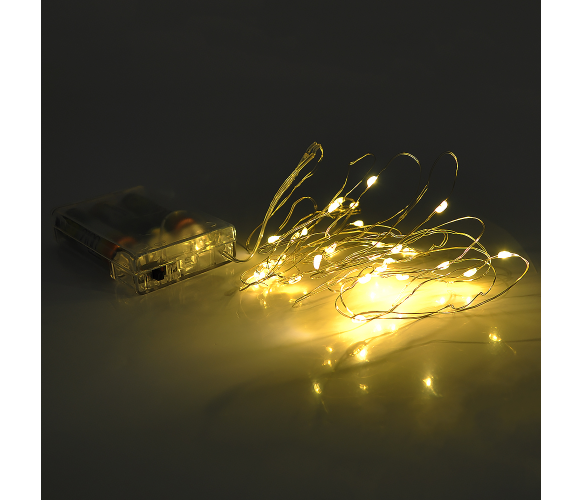 Гірлянда 20LED з одним режимом, що має прозору ізоляцію та довжиною 3 метри. Живлення здійснюється від 3 батарейок типу АА (не входять до комплекту). Колір гірлянди – жовтий. Запаковано в коробку.