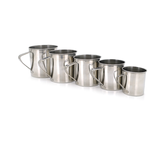 Набір складається з 5 кухлів з нержавіючої сталі різного об'єму: 0,2 л, 0,25 л, 0,4 л, 0,55 л і 0,9 л.
