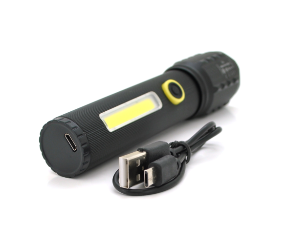 Опис: Ліхтарик Bailong BL-C71-P50+COB виготовлений з алюмінію та оснащений вбудованим акумулятором. Поставляється в комплекті із зарядним пристроєм та коробкою.