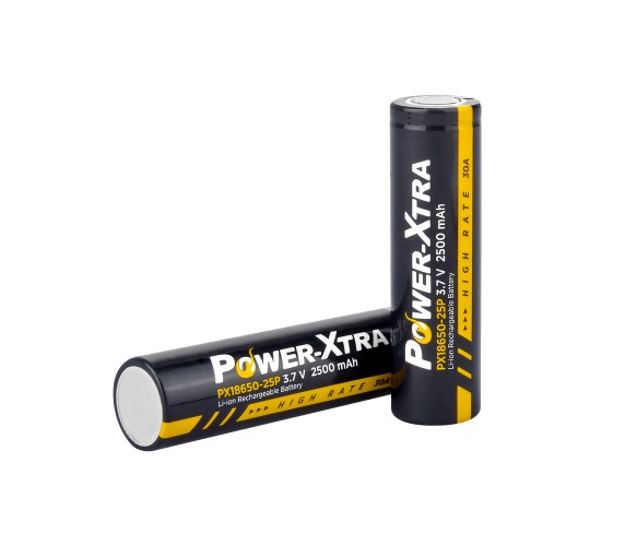 Акумулятори Power-Xtra 18650 являють собою літій-іонні батареї, що перезаряджаються, з номінальною напругою 3.7V і номінальною ємністю 2500mAh. Ось основні характеристики та опис цього продукту: