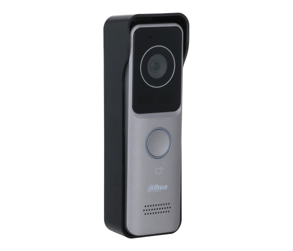 DHI-VT02311R-WP — зручна ультратонка панель виклику Dahua. Може встановлюватися на вулиці та в приміщеннях, для контролю входу. Має автоматичний доступ та можливість зв'язатися з внутрішнім монітором. Надійна та стильна накладна панель оснащена відеокамерою, кнопкою для дзвінка, чутливим мікрофоном, динаміком та зчитувачем. Маючи ключ-брелок, двері можна відчинити на місці, або зателефонувати на пульт. Відвідувачів можна розглянути навіть уночі завдяки ІЧ-підсвічуванням з WDR на камері. Також доступний двосторонній голосовий зв'язок. Розблокування здійснюється дистанційно, у підключеному додатку. Живлення DHI-VTO2311R-WP здійснюється через Ethernet, а з'єднання та керування встановлюється по Wi-Fi, що спрощує роботу на відстані.