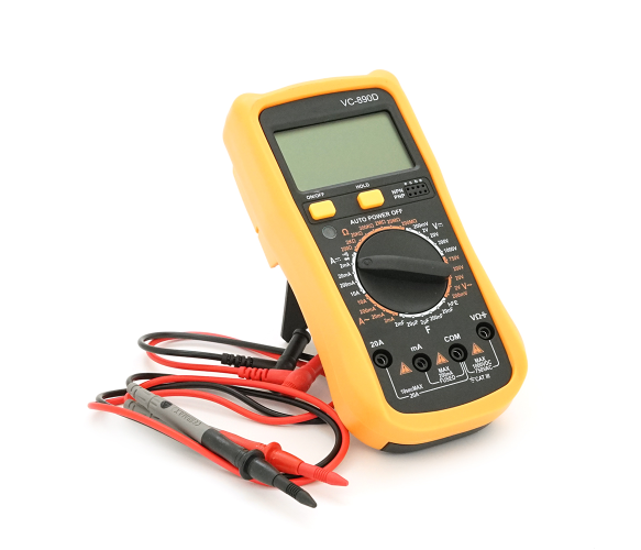 - Вимірює всі основні параметри: напруга (постійна та змінна), струм (постійний та змінний), опір, ємність, частоту.