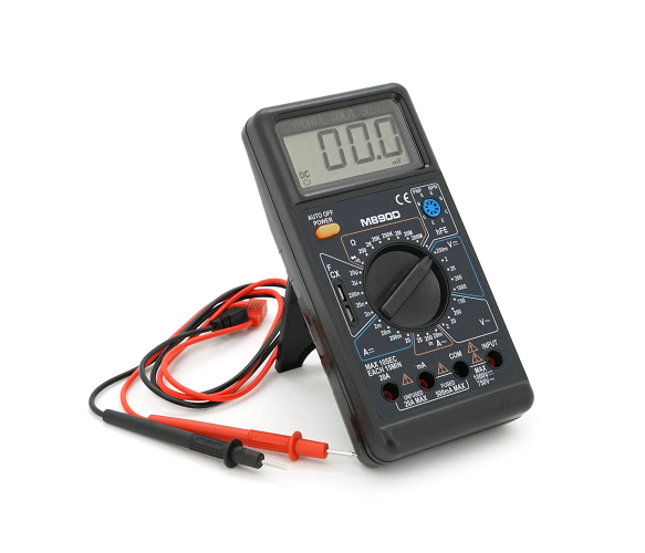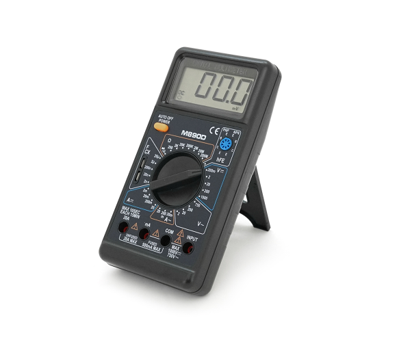 Компактний цифровий мультиметр для електротехнічних вимірювань. Призначений для вимірювання напруги, струму, опору, ємності та перевірки електронних компонентів. Підходить для домашнього використання та простих ремонтних робіт.