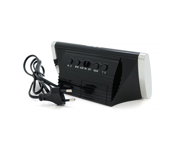 Формат часу: 24 год;Будильник: є;Живлення: від мережі 220V;Колір підсвічування: зелений;Розміри: 190х60х80 мм.