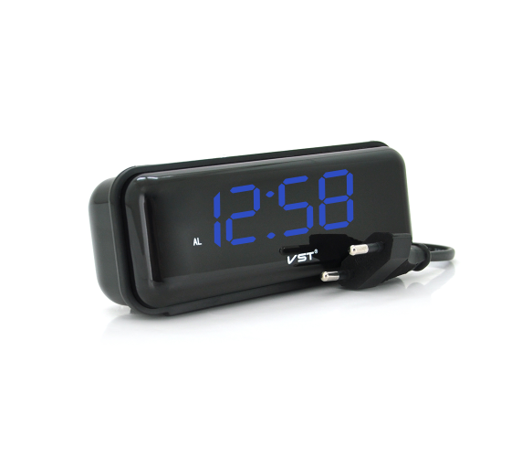 Формат годинника: 24 год;Будильник: є;Живлення: від мережі 220V;Колір підсвічування: синій;Розміри: 145х50х50 мм.