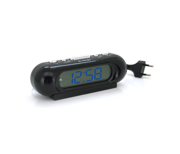 Формат годинника: 24чКолір корпусу: чорнийКолір підсвічування: синійБудильник: єМатеріал корпусу: ПластикРозміри: 170х60х55мм