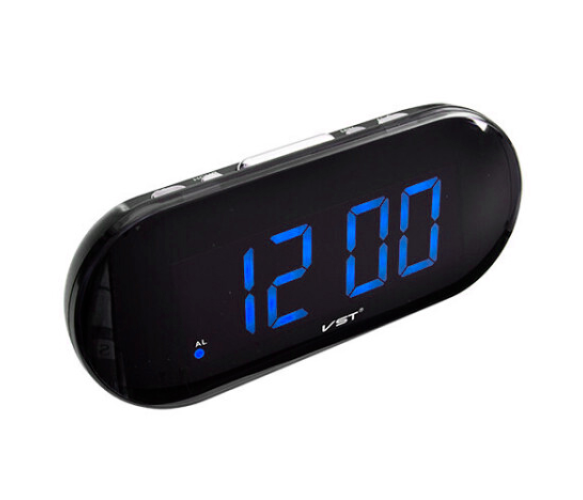 Формат годинника: 24чКолір корпусу: чорнийКолір підсвічування: синійБудильник: єМатеріал корпусу: ПластикРозміри: 170х60х55мм