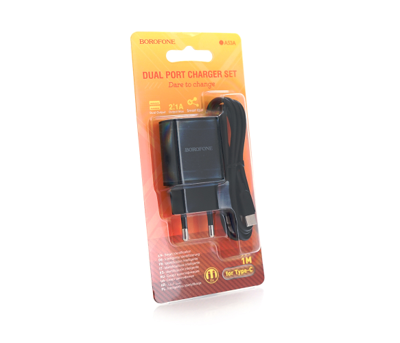 Набір зарядного пристрою BOROFONE BA53A СЗУ 1xUSB+ кабель Type-C призначений для швидкого заряджання пристроїв із роз'ємом Type-C. Колір корпусу – чорний. Запакований у блок-блістер.
