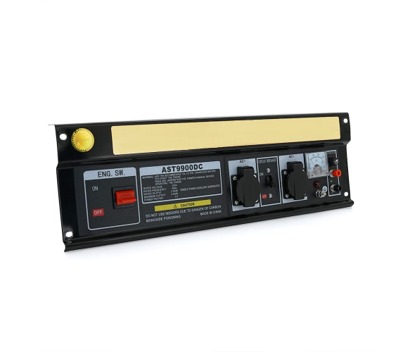 Опис: Панель приладів генератора 2.5кВт (168F) у зборі, включаючи розетки 2шт, вольтметр, вимикач двигуна, клеми зарядки АКБ 12В та запобіжник.