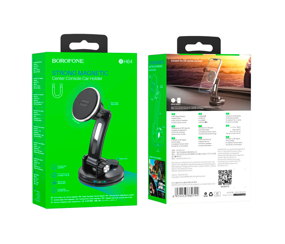 Автотримач BOROFONE BH64, кріплення на торпеду, магніт, Black, Box
