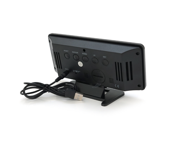Електронний годинник VST-888 з дзеркальним дисплеєм пропонує зручний спосіб відстежувати час і температуру, а також використовувати будильник. Годинник живиться від кабелю USB і має зелений колір.