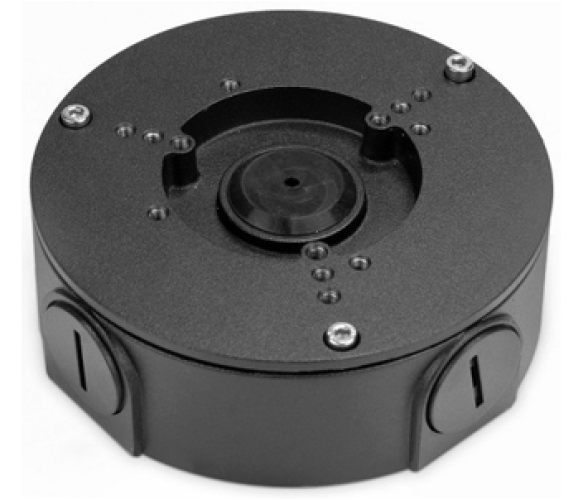 DH-PFA130-E - надійний комутаційний бокс, призначений для кріплення до нього камери, а також для захисту та акуратного проведення кабелю. Дана модель Dahua виконана у фірмовому чорному кольорі. Ідеально підійде для відповідних відеокамер цього виробника. Виготовлено розподільчу коробку з алюмінію. Внутрішня частина корпусу та місце контакту з кронштейном закриті від багатьох видів впливів ззовні. Її непросто відкрити, туди не набивається пил і потрапляє волога. Для виведення проводів передбачено виходи, але можна ними і не користуватися, залишивши кришку. Крім функцій розподільника DH-PFA130-E виконує роль поверхні для кріплення пристроїв. Важить аксесуар лише 350 грам, але витримує майже в 10 разів велике навантаження – до 3 кілограм. Матеріал стійкий до температур від -40 до +60 °.