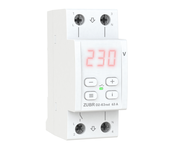 Реле D2-63RED захищає обладнання від високої та низької напруги, а також від обриву нуля.