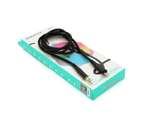 Опис: Перехідник Borofone BL7 призначений для підключення пристроїв із роз'ємом Jack 3.5mm до пристроїв із роз'ємом Lighting. Цей перехідник має довжину 1 метр, чорного кольору, що поставляється в упаковці.