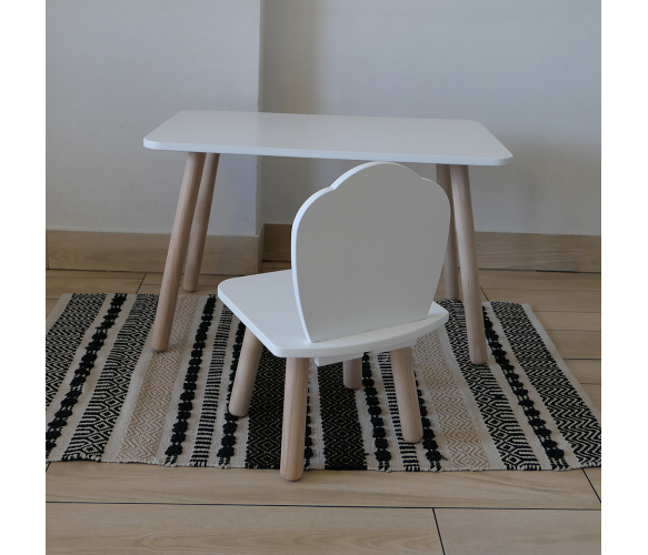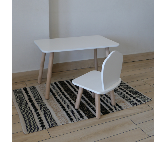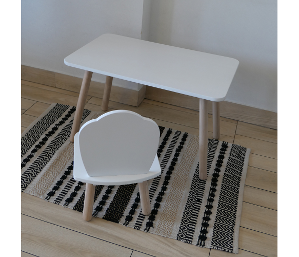 Комплект стіл та стілець дитячий - Voltronic Set Стіл білий прямокутний + стілець білий Мушля (ФАНЕРА)