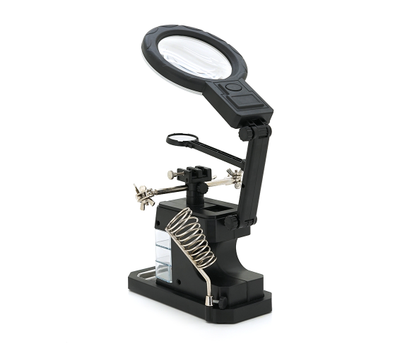 Даний власник призначений для паяння електронних компонентів, ремонту друкованих плат, ювелірних робіт та інших завдань, які потребують точного позиціонування дрібних об'єктів. Він вирішує ключову проблему одночасного освітлення, збільшення та фіксації робочої зони, забезпечуючи комфортні умови для роботи з мікросхемами, SMD-компонентами та мініатюрними механізмами. Комплексна конструкція унеможливлює використання додаткових пристроїв.