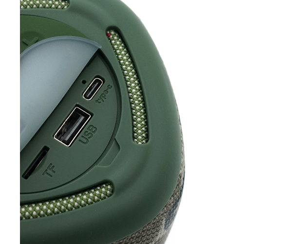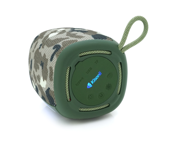 Цей Колонка Kisonli 7 Bluetooth 5.3 поєднує у собі високу якість звуку, зручну портативність та різні функції, такі як відтворення через USB/TF картки, підтримка TWS, вбудований FM-радіо, Bluetooth підключення та вбудовані світлодіодні вогні. Він має вбудований акумулятор ємністю 1800mAh, що забезпечує тривалий час роботи та зручну зарядку через USB порт. Колонка оснащена зручним портативним корпусом у камуфляжному стилі, ідеальним для використання поза приміщенням.