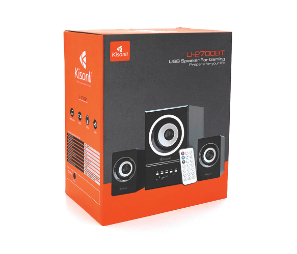 Опис: Колонки Kisonli U-2700BT є компактною аудіосистемою з сабвуфером, що підтримує відтворення музики через USB, TF-карту, Bluetooth, FM-радіо або AUX-вхід. Колір корпусу – чорний.