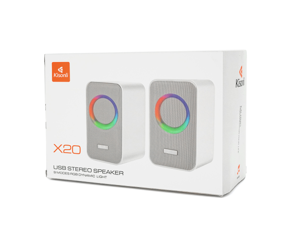 Опис: Колонки Kisonli X20BT – це стильні та компактні колонки з потужністю 2x10W, обладнані USB-портом, багатобарвним підсвічуванням RGB та функцією Bluetooth. Вони мають чорний колір і поставляються у зручній упаковці.