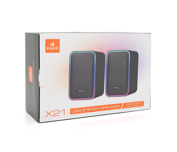 Колонки Kisonli X21BT – це компактні портативні колонки з потужністю 2x10W, оснащені роз'ємом USB та підтримкою RGB підсвічування. Вони підтримують функцію Bluetooth, мають вхідну напругу DC 5V/1-2A та постачаються у білому кольорі в коробці.