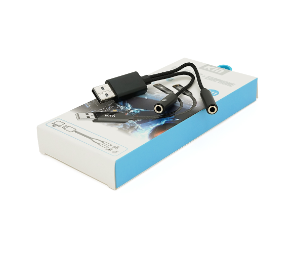 Опис: Перехідник для навушників та мікрофону KIN KY-211 USB2.0(M)-2/Jack3.5(F), чорний, упаковка