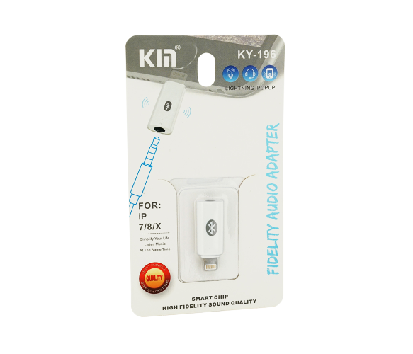 Перехідник KIN KY-196 Lighting(M) => Jack 3.5mm(F)+Bluetooth, білий, у коробці.