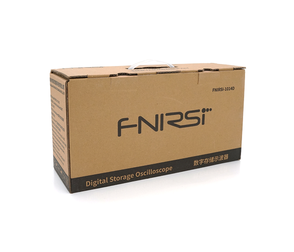FNIRSI-1014D - це «два в одному», осцилограф і генератор сигналів, випущений компанією FNIRSI. Має великі функції і високу практичність. Це економічний двоканальний настільний осцилограф для індустрії технічного обслуговування, досліджень та розробок. Осцилограф має смугу пропускання від 0 до 100 МГц. Частота дискретизації становить 1 GSa/s, а вертикальна чутливість від 50 мВ/діл до 500 В/діл. Кількість каналів – 2. Значення максимальної напруги на вході: 40 В (x1 зонд), 400V (x10 зонд). Розрядність АЦП – 8 біт. Осцилограф оснащений кольоровим, висококонтрастним дисплеєм 7-дюймовим TFT з роздільною здатністю 800*480. Захист входу до 400V. Є вбудована пам'ять, що дозволяє зберігати до 1000 скрин і подальший їх експорт на комп'ютер через USB. Харчування: 5В (БП).