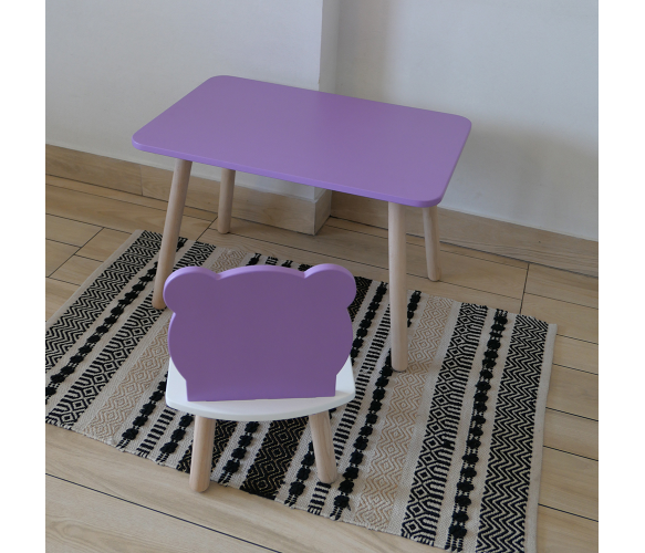 Комплект стіл та стілець дитячий - Voltronic Set Стіл бузковий прямокутний + стілець бузковий Мишка (ФАНЕРА)