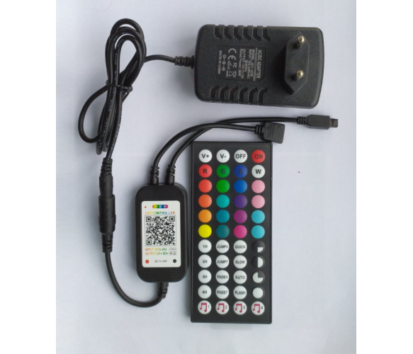 RGB контролер, 5-24В, для 5050 cmd led, блютуз, пульт інфрачервоний, музичний контроль, мобільний телефон, ІЧ-порт, роз'єм RGB-4pin, БЖ DC12В штекер5.5*2.5