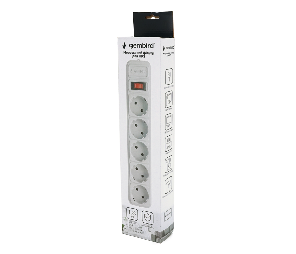 Опис: Подовжувач мережі Gembird UPS SPG5-X-6G - це пристрій, який дозволяє підключити кілька електроприладів до однієї розетки. Він забезпечує захист від перевантажень та має п'ять розеток для підключення пристроїв.