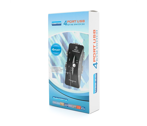 4-портовий KVM (Keyboard, Video, Mouse) свіч являє собою пристрій, призначений для керування безліччю комп'ютерних систем з використанням єдиної консолі, включаючи монітор, клавіатуру та мишу. Цей технічно просунутий інструмент покликаний оптимізувати керування комп'ютерами, дозволяючи користувачам миттєво перемикатися між різними системами без фізичної перекомутації апаратури.