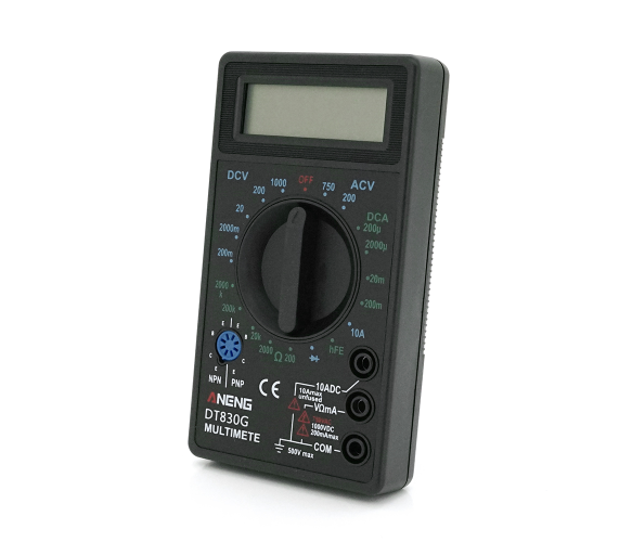 ANENG AN-DT830G – портативний цифровий мультиметр для вимірювання AC/DC напруги, DC струму, опору та тестування транзисторів та діодів.