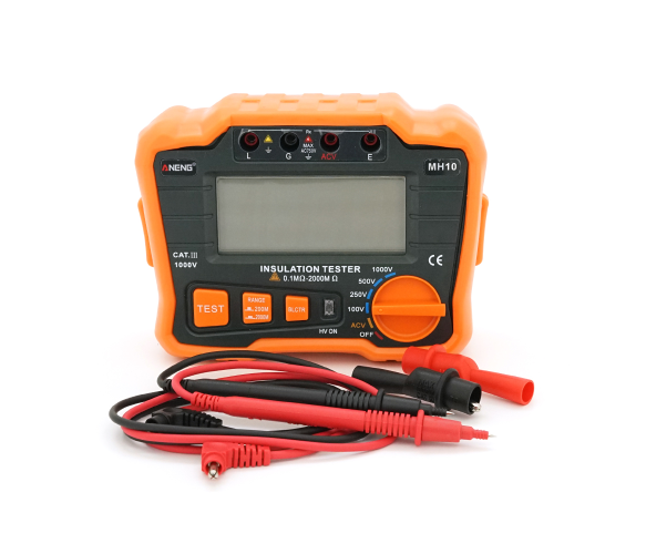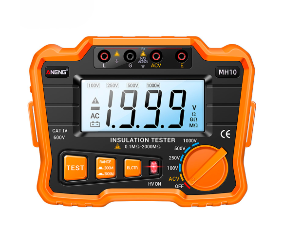 Aneng MH10 - це багатофункціональний інструмент, який може вимірювати опір ізоляції та напругу змінного струму. Він точний та має стабільну продуктивність, використовується для вимірювання опору електричного обладнання, кабелю, електромеханічного обладнання, телекомунікаційного обладнання, електроенергетичних об'єктів та іншого опору ізоляції.