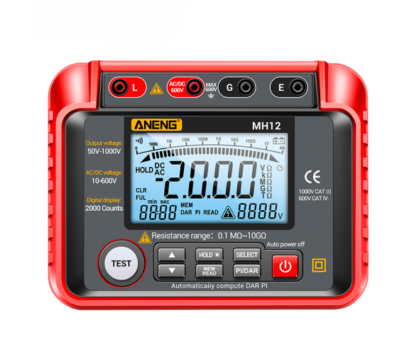ANENG MH12 – мультифункціональний портативний прилад для перевірки опору ізоляції та визначення індексу поляризації.