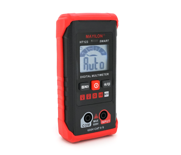 Мультиметр Mayilon HT-123 поєднує кілька функцій вимірювання, таких як напруга змінного струму, напруга постійного струму, опір, безперервність ланцюга. Мультиметр має датчик NCV (безконтактний вимір напруги). Підсвічування екрана, попередження про низький заряд батареї. Дисплей на 2000 відліків. Автоматичне вимкнення для заощадження батареї. Маленька, легка, ергономічна форма, зручно тримати в руці. Гумовий корпус захищає від механічних пошкоджень. У комплекті із тестовими проводами.