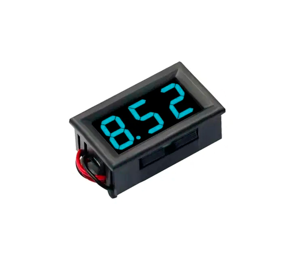 Опис:Цифровий вольтметр із діапазоном вимірювань від 5 до 120 В, синього кольору.Характеристики:- Тип: цифровий вольтметр- Діапазон вимірів: 5 - 120 В- Колір синій