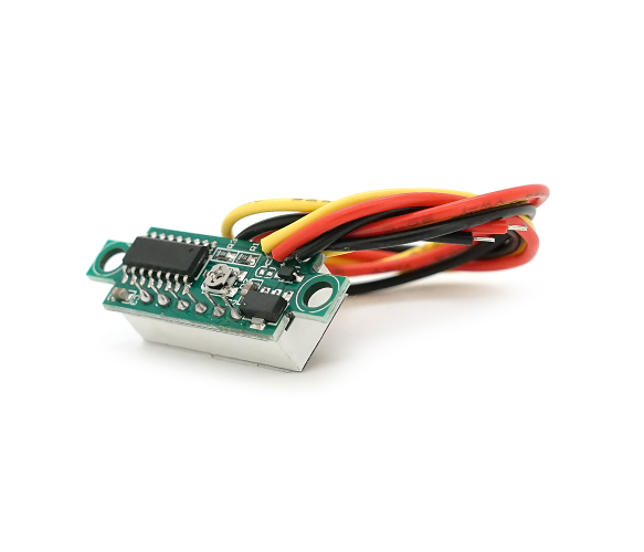 Цифровий вольтметр із діапазоном вимірювань від 0 до 100V. Має довжину 0,28 дюйма та три дроти, пофарбованих у жовтий колір.
