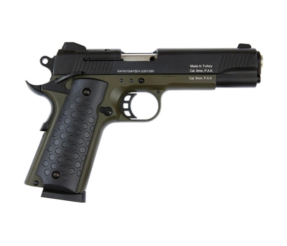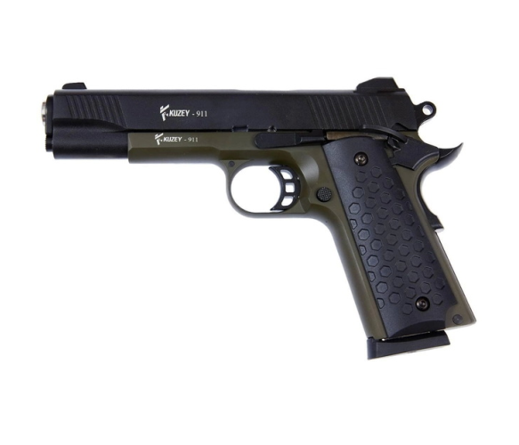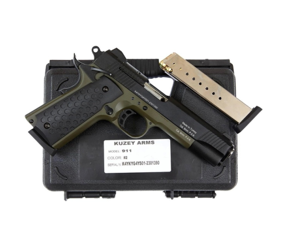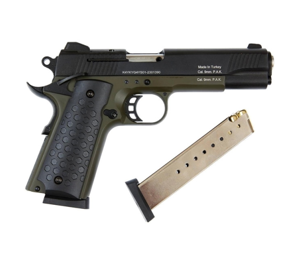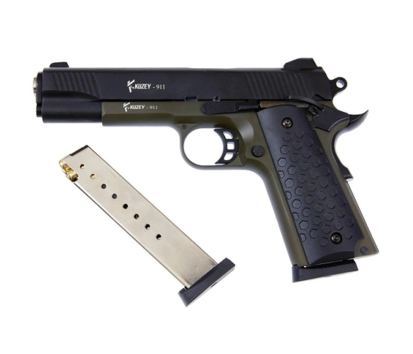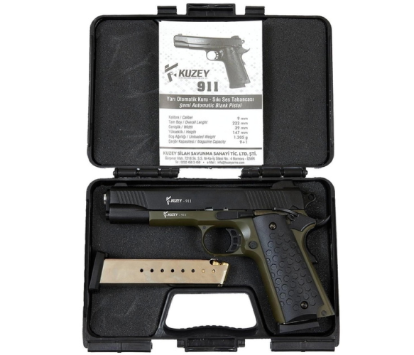 Сигнально-стартовий пістолет KUZEY 911-2, 9+1/9mm, +1магазин, Чорний/Зелений, Кейс