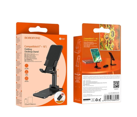 Настільна підставка для телефону Borofone BH81 призначена для зручного розміщення смартфона на робочому столі або на іншій горизонтальній поверхні. Вона забезпечує стійку фіксацію телефону та зручний доступ до екрана під час роботи або перегляду контенту.