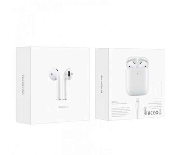 Навушники Bluetooth Borofone BW01 Plus - стильні бездротові навушники у білому кольорі із зручним кейсом для зберігання.