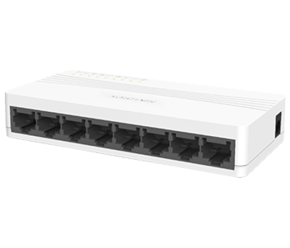 8-портовий комутатор. Порти: 8x RJ45 (10/100/1000M); Стандарти: IEEE 802.3, 802.3u, 802.3x, 802.3ab; Живлення: DC 9В; -40º до +70ºC; 142x90x23 мм.