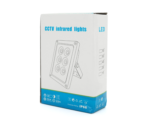 ІЧ-прожектор LW6-50IR006-12 - це інфрачервоний освітлювач для систем відеоспостереження, що забезпечує невидиме підсвічування до 50 метрів. Пристрій генерує монохроматичне випромінювання з довжиною 850 нм хвилі, яке ідеально сумісне з матрицями більшості камер відеоспостереження нічного бачення. Живлення 12 В постійного струму дозволяє інтегрувати прожектор у існуючі системи безпеки без модернізації електроживлення.