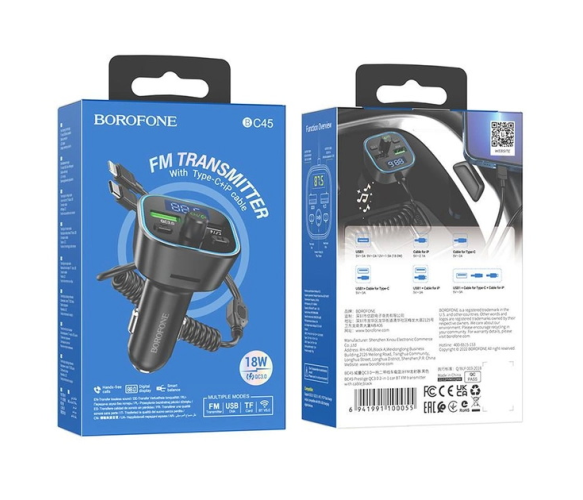 Опис: FM-модулятор Borofone BC45, чорний, у коробціХарактеристики:- FM-модулятор для автомобільного використання- Колір чорний- Поставляється в коробці