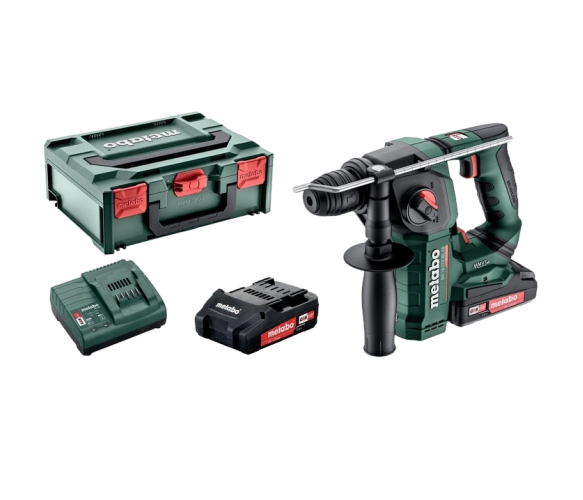 Дуже легкий компактний акумуляторний перфоратор з безщітковим двигуном для свердління без утоми в будь-якій робочій позі. Максимальна потужність свердління, ефективність та довговічність за рахунок безщіткової технології та потужного ударного механізму. Перфоратор з двома функціями: Буріння та свердління. Metabo VibraTech (MVT): робота без втоми та шкоди для здоров'я також у тривалому режимі. Vario-Tacho-Constamatic (VTC) – повнохвильова електроніка для керування числом оборотів залежно від властивостей матеріалу та його підтримки постійним під навантаженням. Електронне аварійне відключення двигуна під час блокування приладдя для безпечної роботи. Світлодіодне робоче підсвічування для оптимального огляду місця свердління. З metaBOX, продуманим рішенням для транспортування та зберігання. Багато марок, одна акумуляторна система: Цей продукт сумісний з усіма акумуляторними блоками на 18 В та зарядними пристроями CAS.