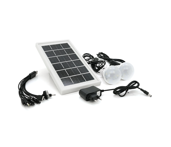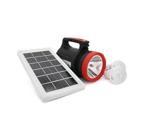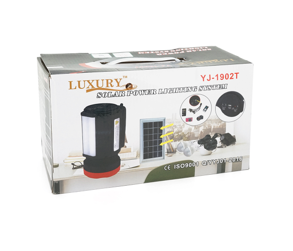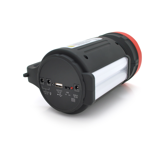 Комплектація: ліхтар, ремінець на плече, ЗУ 220, універсальний USB кабель для зарядки, 2 світлодіодні лампи з вимикачами, сонячна панелька