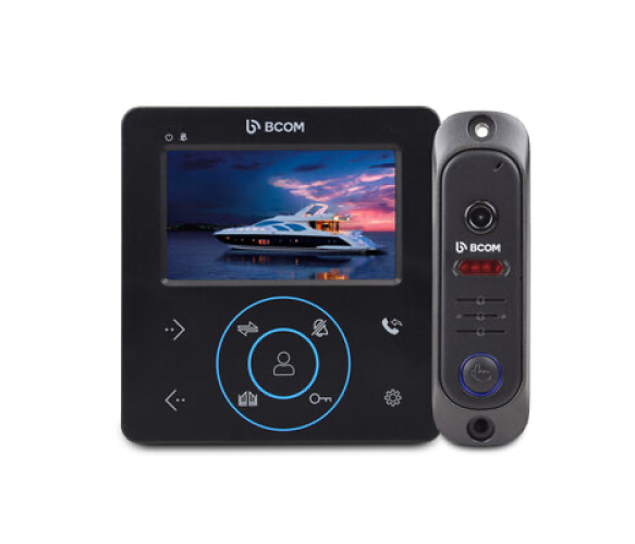 Комплект: відеодомофон та відеопанель. Кольоровий домофон з TFT екраном 4 дюйми та сенсорними кнопками управління, підключення 2 панелей, 2 відеокамер, 2 датчиків тривоги. Розмова про гучний зв'язок, є інтерком. З'єднання з панеллю виклику 4-провідне. Слот microSD до 32 Гб, 100-240V живлення, споживання 8 Вт. Корпус домофону чорного кольору. Кольорова панель виклику чорного кольору з роздільною здатністю 1000ТВЛ і кутом огляду 110°, з накладним способом установки.