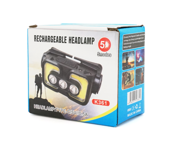 Опис: Налобний ліхтарик Voltronic K361 з яскравим білим та червоним світлодіодом, 5 режимами освітлення, водонепроникним корпусом, вбудованим акумулятором та USB Type-З кабелем.