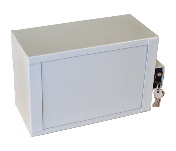 Антивандальна шафа VAGOS Lite 300х200x140 (0.5мм) з дверцятами-пеналом, оснащена крабовим замком "Аріко" та чотирма отворами діаметром 22мм.