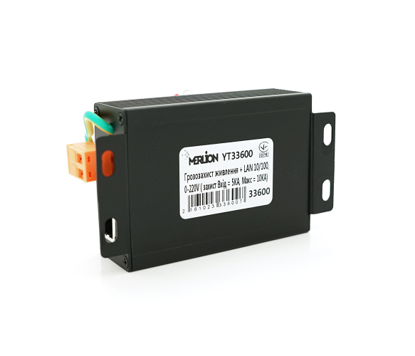 Грозозахист живлення з функцією захисту LAN (мережа 10/100 Мбіт/с) призначений для захисту як електроживлення, так і мережевого обладнання від перенапруг, що виникають під час грози або інших електричних збурень у мережі. її показники: